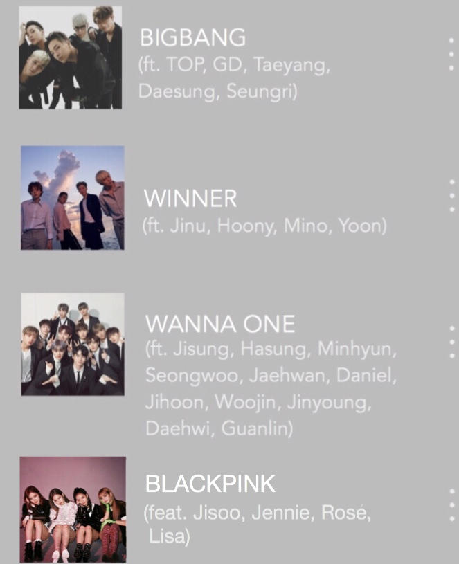 'irene , seulgi,yixing, d.o, ten, jungwoo, jimin, dk, jinhwan'